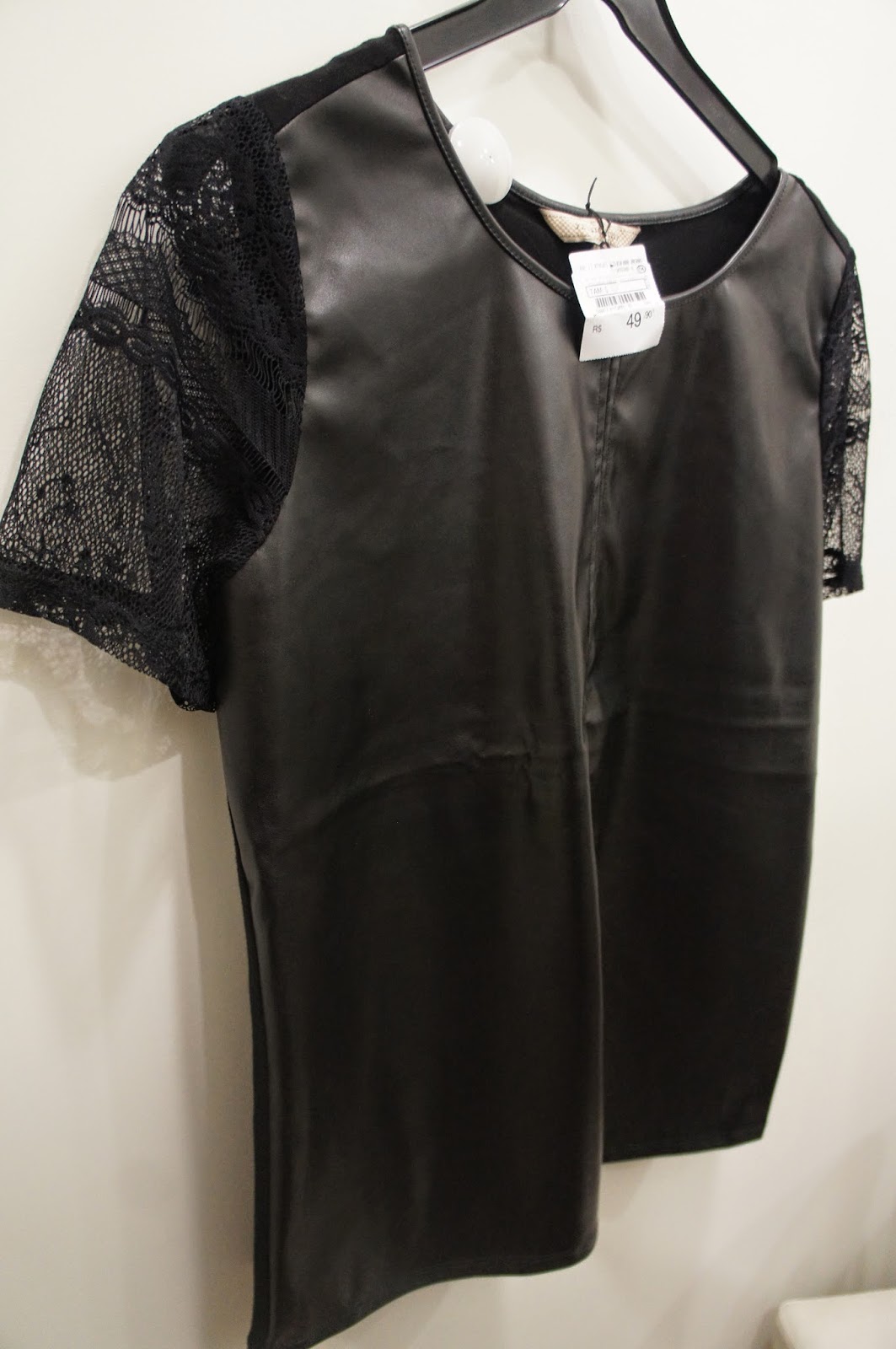 Blusa de couro fake com aplicação de renda nas mangas. Linda, meiga e super IN para o seu inverno. O mais legal é que a parte de trás é de tecido, o que deixa um caimento melhor na peça. O preço é super amigo - R$ 49,00